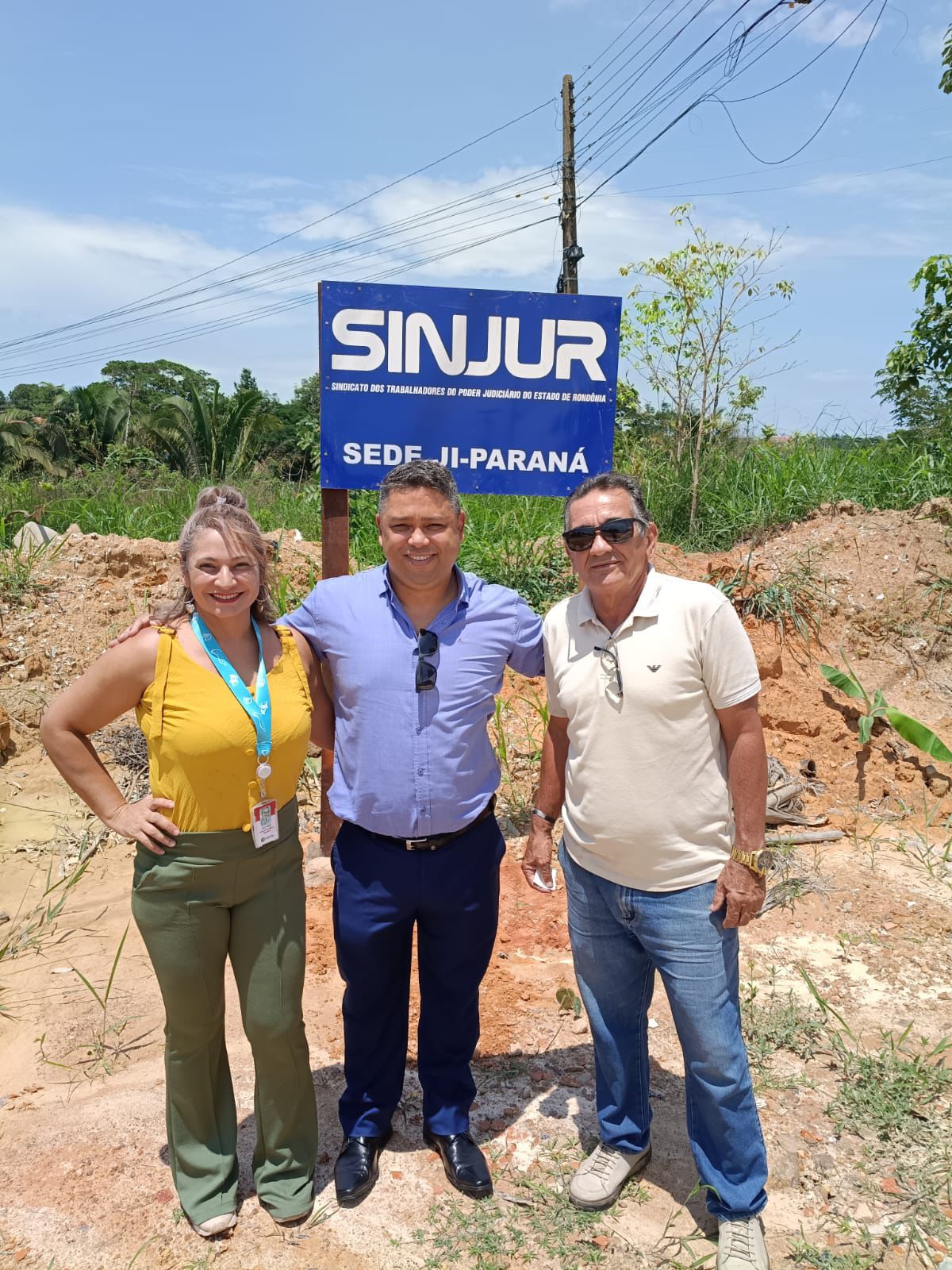 A visita ocorreu no ponto onde foi afixada a placa que oficializa a destinação da área. Participaram do ato a servidora Elzivã, diretora de Esportes do Sinjur, que desempenhou papel fundamental na articulação entre o sindicato e a Associação dos Servidores do Poder Judiciário do Interior (Aspojir), e o servidor aposentado Erlandio, presidente da associação, responsável por viabilizar juridicamente e institucionalmente a doação.