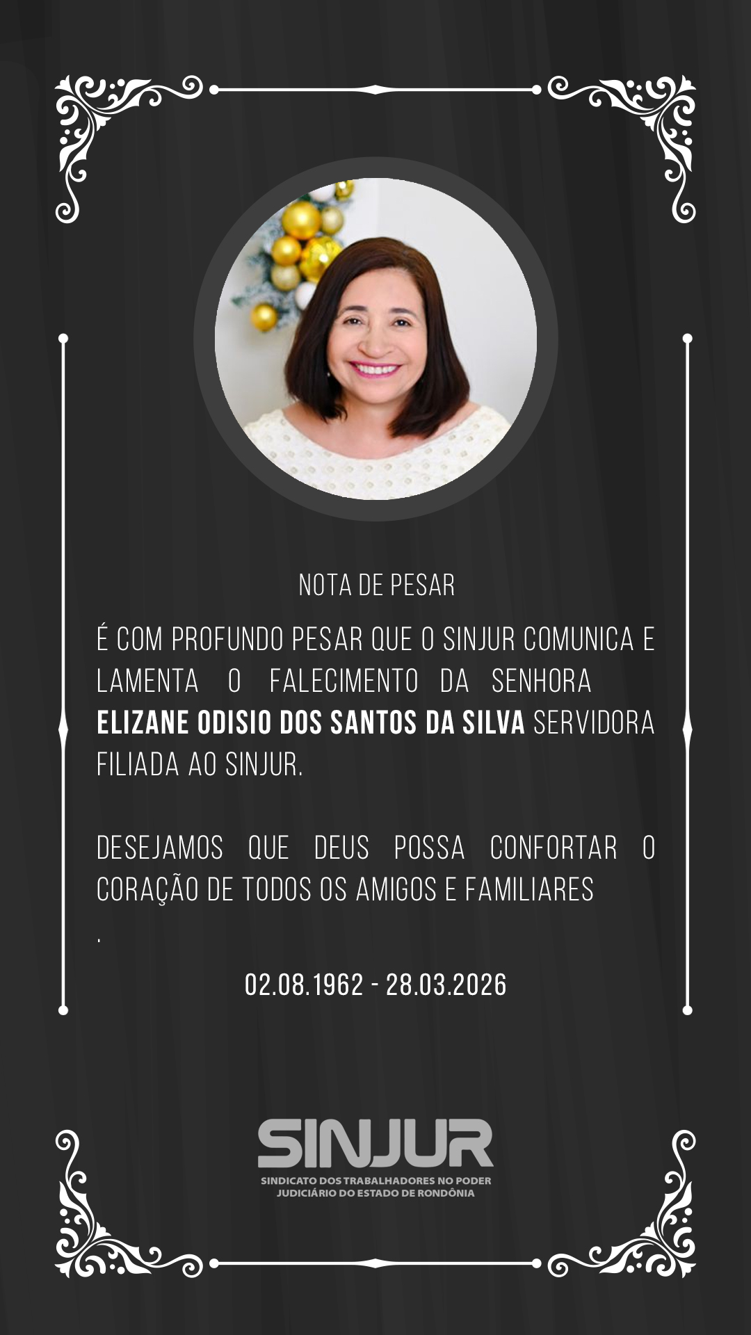 é com profundo pesar que o sinjur comunica e lamenta o falecimento da senhora