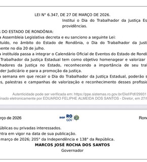 A nova legislação, sancionada pelo governador Marcos Rocha, passa a integrar o calendário oficial do Estado e tem como objetivo homenagear e valorizar todos os profissionais que atuam no sistema de Justiça, reconhecendo a importância do trabalho desempenhado para o funcionamento do Poder Judiciário e para a promoção da justiça em Rondônia.