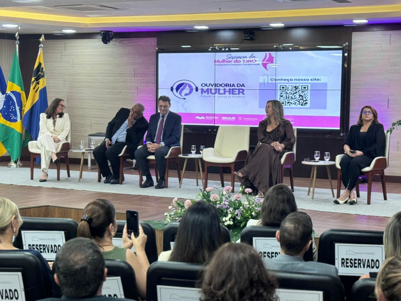 O evento foi marcado por um momento histórico: a instalação oficial da Ouvidoria da Mulher do TJRO, canal especializado de escuta, acolhimento e orientação para mulheres vítimas de violência. A ata de instalação foi assinada pelo presidente do Tribunal, desembargador Alexandre Miguel, e pela desembargadora Inês Moreira, que acumula as funções de ouvidora-geral, coordenadora da Mulher e agora ouvidora da Mulher do TJRO.